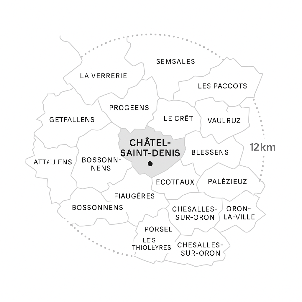 Je me déplace à Châtel-Saint-Denis ainsi que dans les villages situés dans un rayon d’environ 12 km.